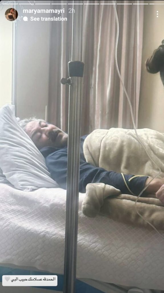 في هذا السياق، نشرت ابنة الفنان السوري عبد المنعم عمايري عبر صفحتها على انستغرام صورة لوالدها من داخل المستشفى.